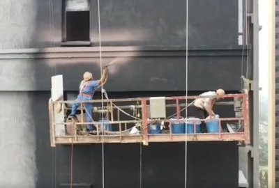 真石漆噴涂機 溫馨走進施工現(xiàn)場 展示團隊關(guān)